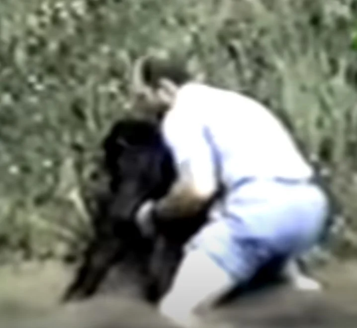At first, Swope struggled to find the chimp in the muddy moat. He reached out, but Jo-Jo slipped beneath the surface again. Determined, Swope dove deeper, emerging moments later with the 200-pound animal in his arms.