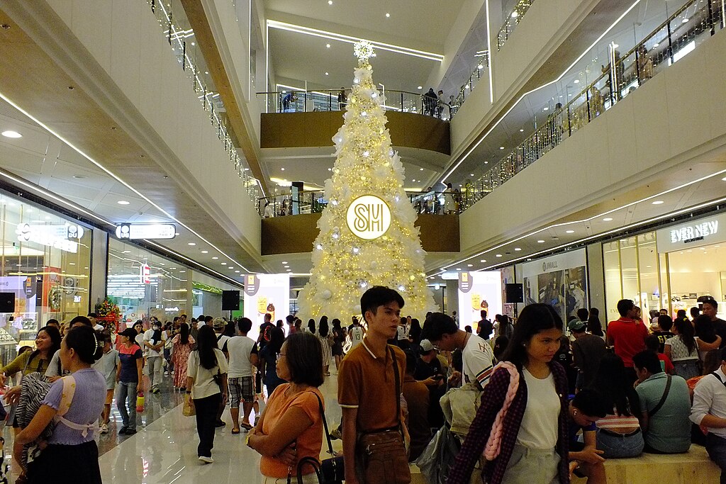 Every store was open. Every hallway was alive. Christmas decorations weren’t subtle or minimalist, they were bold, over-the-top, and everywhere. Garlands hung from railings. Giant trees towered over center courts. Lights glowed from every direction.